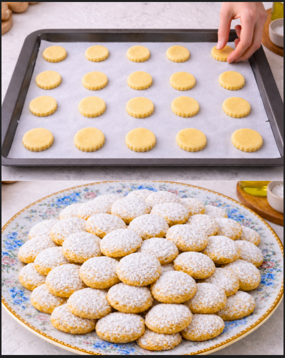 Disponi i biscotti su una teglia rivestita con carta da forno, mantenendo una leggera distanza tra uno e l’altro.