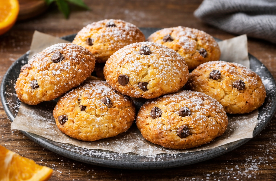 Questi biscotti sono perfetti per chi cerca un dolce veloce ma speciale. La scorza e il succo d’arancia donano all’impasto un aroma naturale e avvolgente, mentre le gocce di cioccolato aggiungono una nota golosa che rende ogni morso ancora più invitante. Il risultato finale è un biscotto dalla consistenza tenera e leggermente umida all’interno, con una superficie delicatamente decorata dallo zucchero a velo.