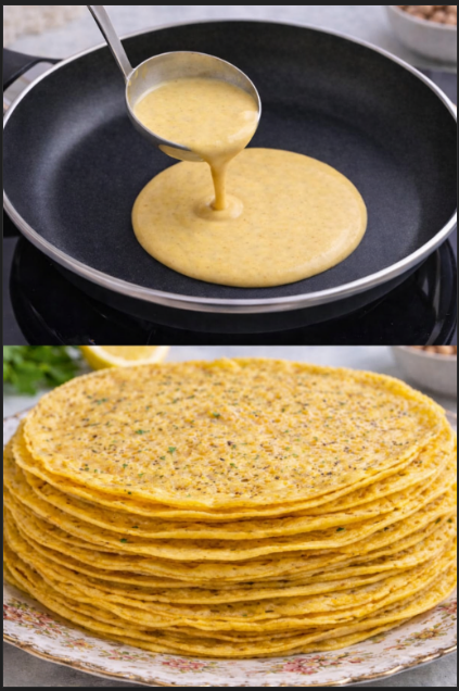La farina di ceci conferisce alle crêpes un sapore deciso e leggermente rustico, perfetto per abbinamenti salati ma sorprendentemente adatto anche a versioni dolci.