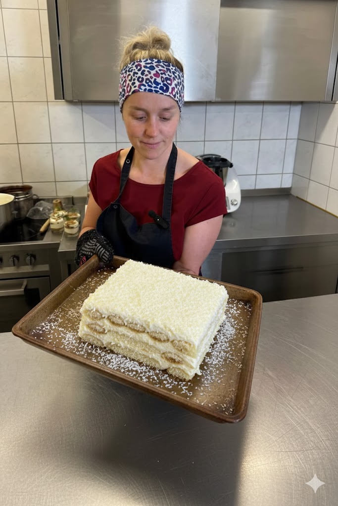Im Gegensatz zum traditionellen Tiramisu mit Kaffee und Kakao überzeugt diese Variante mit einer milden, exotischen Kokosnote. Die Kokosmilch verleiht den Löffelbiskuits eine sanfte Aromatik, während die Raffaello-Pralinen für eine feine Mandel- und Kokosnuance sorgen. Der Amaretto rundet das Ganze geschmacklich ab und sorgt für eine dezente, elegante Tiefe.