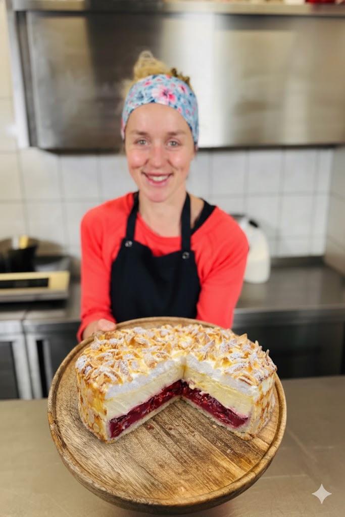 Sie vereint knuspriges Baiser, saftige Kirschen und zarte Sahne zu einem perfekten Dessert für besondere Anlässe. Mit etwas Geduld entsteht eine beeindruckende Torte, die sowohl geschmacklich als auch optisch überzeugt.
