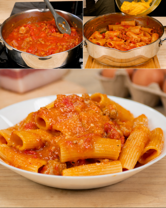 Puoi omettere la salsiccia per un gusto più simile all’amatriciana.