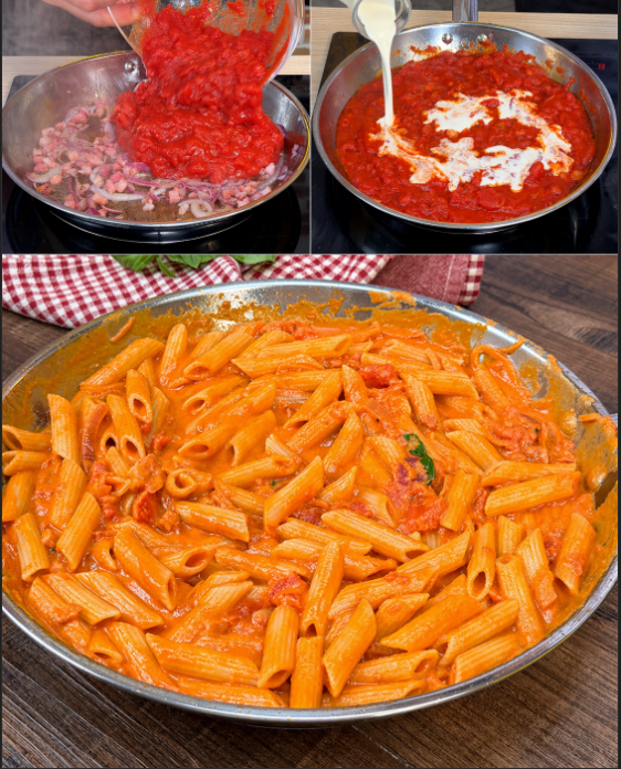 In pochi minuti creò un piatto sostanzioso, nutriente e incredibilmente gustoso: pasta con pomodoro, pancetta, cipolla e panna. Il risultato fu così apprezzato da diventare una ricetta tramandata nel tempo.