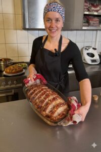 Im vorgeheizten Backofen bei 200 °C etwa 50 Minuten bis eine Stunde garen. Während dieser Zeit wird das Fleisch langsam weich und bleibt besonders saftig.